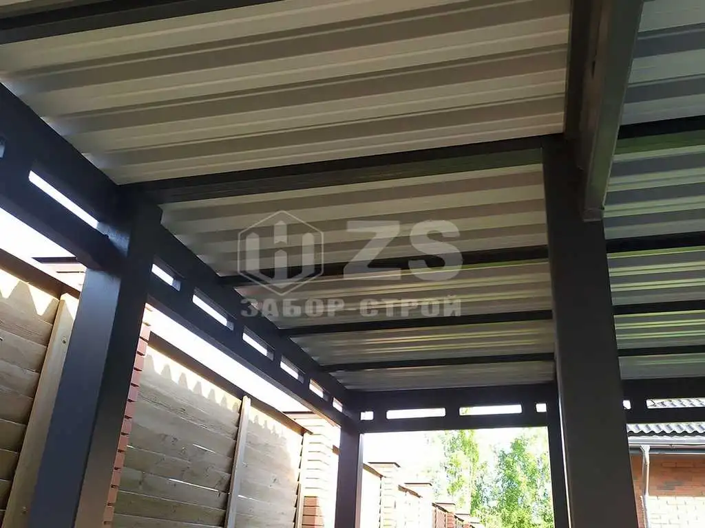 Стандартные характеристики каркаса навеса: столбы 80х80х3мм.