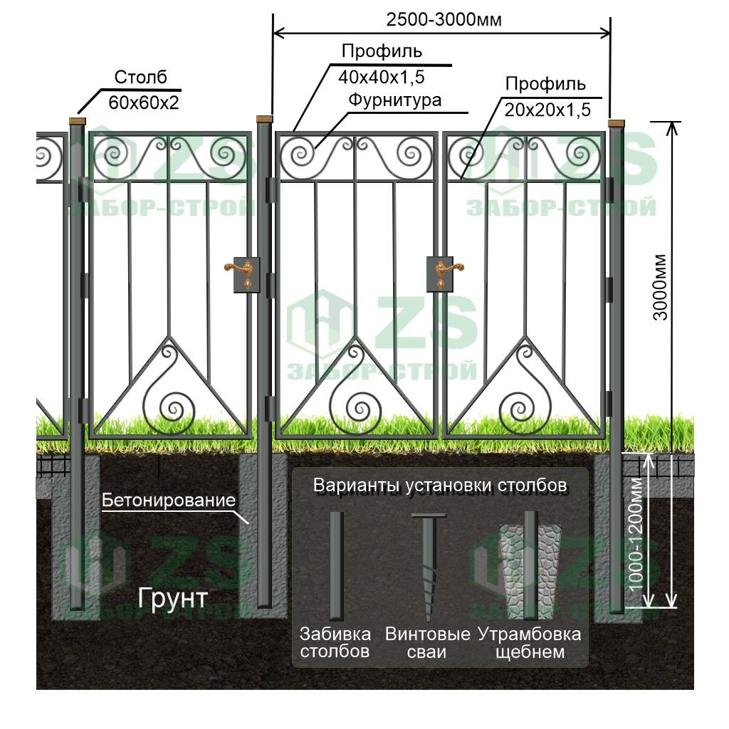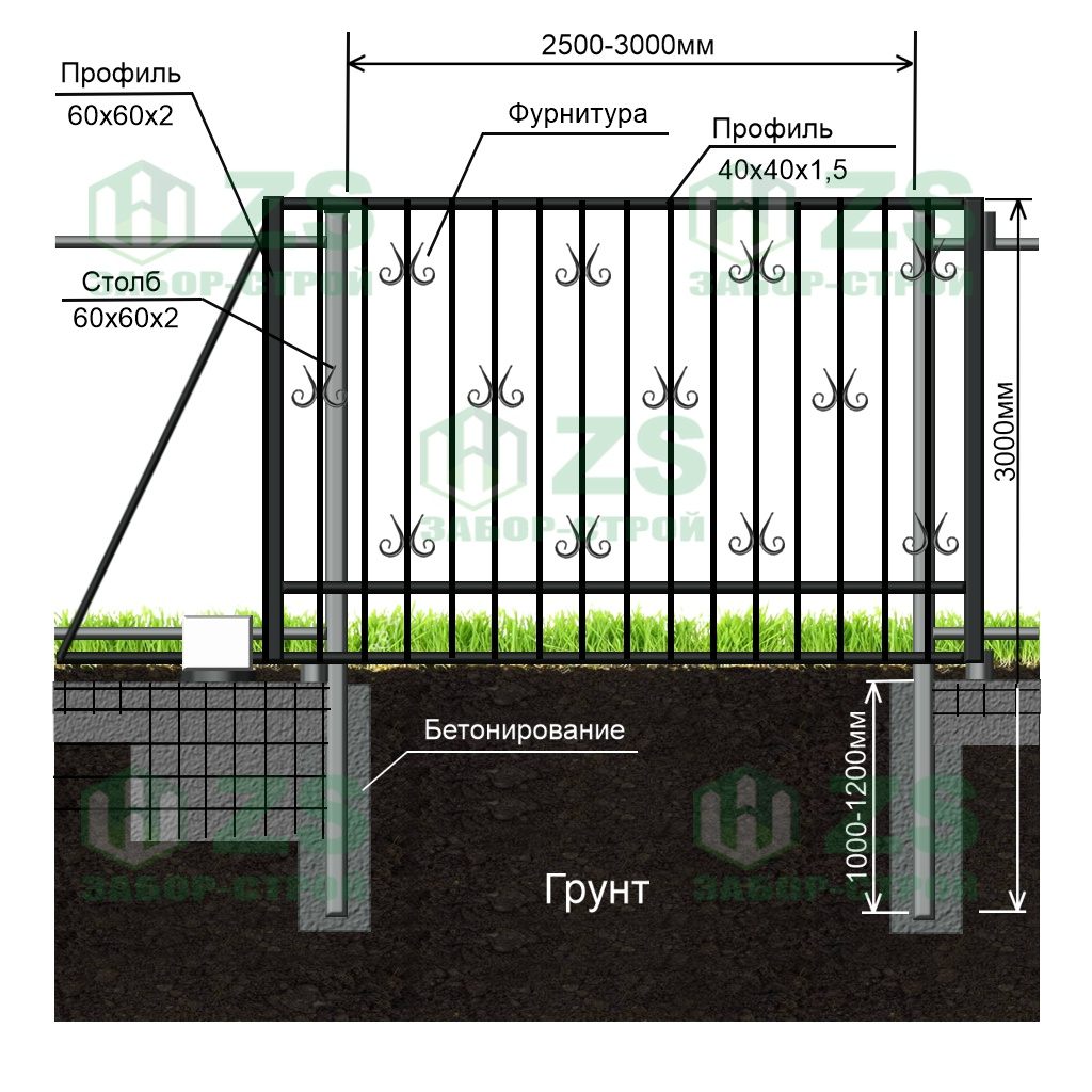 Конструкция сварного забора на ленточном фундаменте с кирпичными столбами: