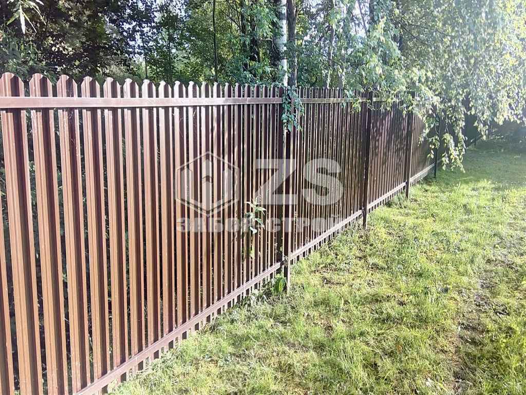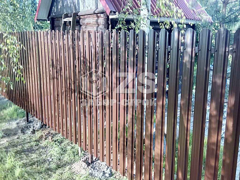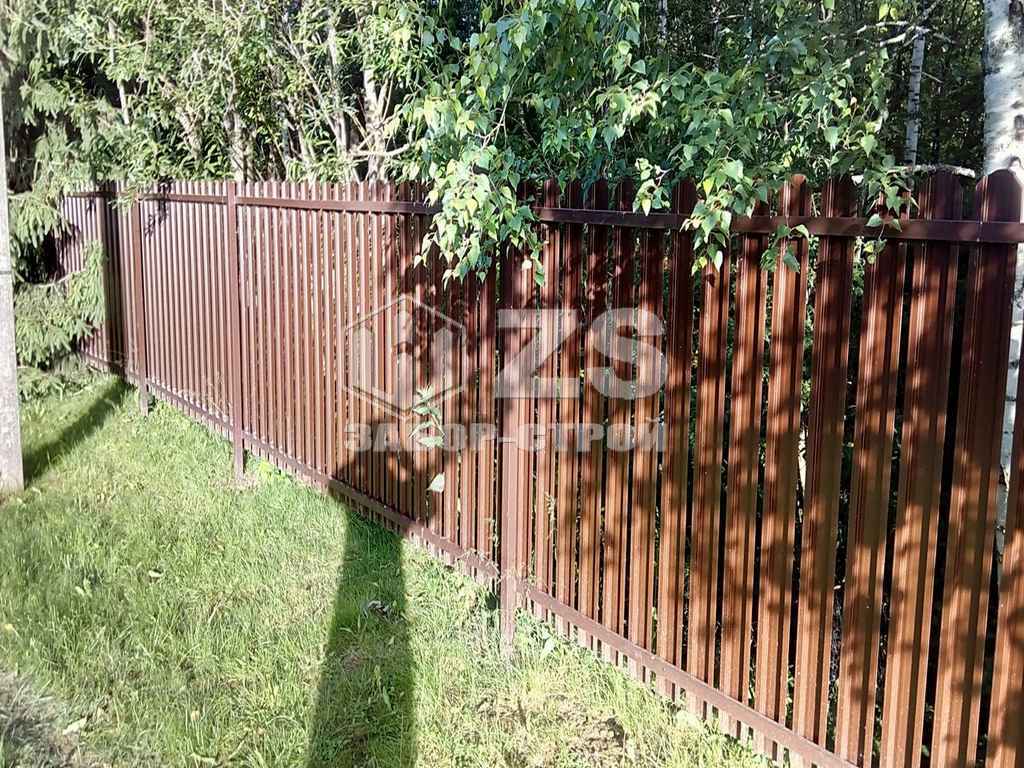 - Забор на столбах с утрамбовкой щебня из евроштакетникаа 25 метров